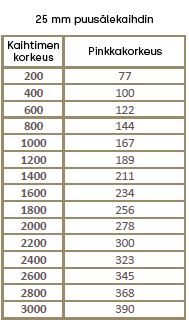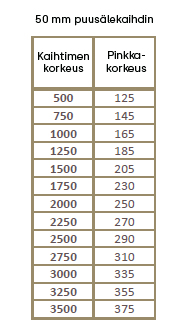 Kuvagalleriasta löydät pinkkakorkeudet 25 mm ja 50 mm puusälekaihtimelle.